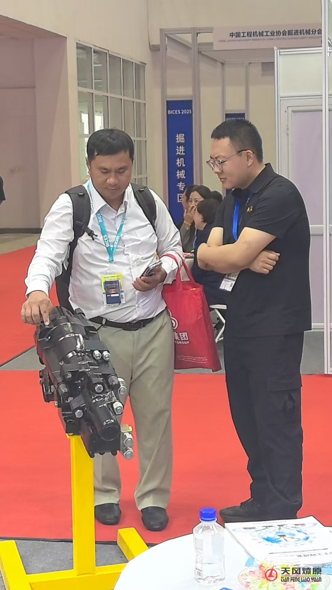 與此同時,研究所所長、總工程師、技術中心主任王建祖,與同行的技術中心兩位資深工程師李文杰,張鑫,堅守在展位的最前沿,他們不僅是天水風動展位上最權威的技術名片,更是產品技術細節(jié)的“活字典”。面對專業(yè)客戶提出的極為深入和具體的技術參數、工況適配、乃至與國際同類競品對比等問題,他們均能侃侃而談,對答如流,為天水風動撐起了“專業(yè)可靠、技術過硬”的可靠形象。而在銷售前線,銷售部副部長頡敏強,面對客戶最為關切的付款條件、售后保障及交付周期等具體問題,給出清晰、精準的解答,讓客戶不僅對我們的產品放心,更對我們的合作流程充滿信心。